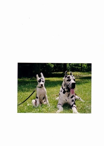Femelle, bonne couleur, très grande, tête de femelle longue et bien typée, assez de stop, les yeux légèrement ouverts, denture correcte: incisives irrégulières et usées, oreille non conforme au standard: coupées => (juge Allemand), encolure bien sortie. Dos légèrement carpé, bonne poitrine. Angulation correcte, arrière main un peu serré. Allure suffisament fluide.